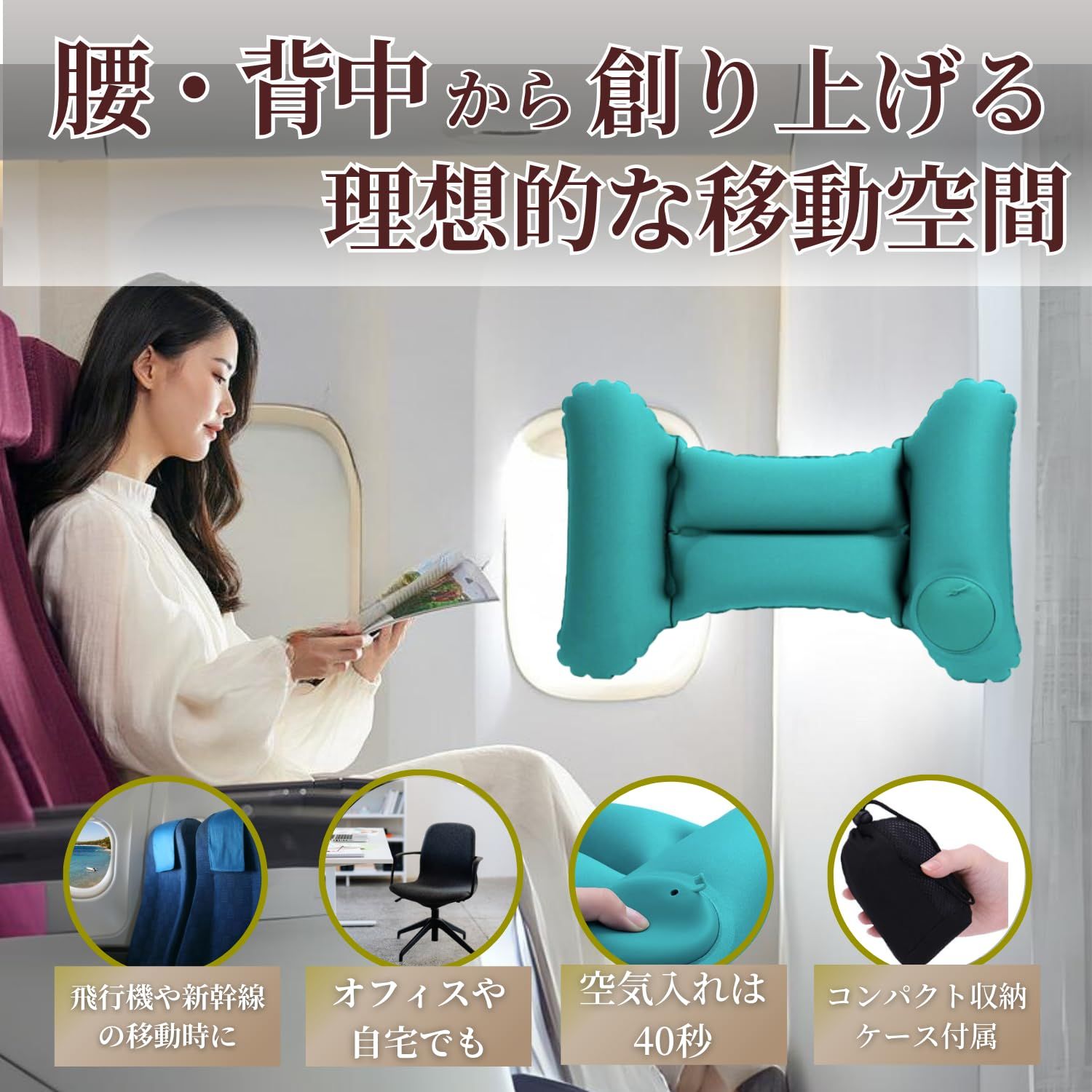 TORUDOの腰痛クッションは、携帯に便利なポーチが付属し、エアー式なのでコンパクトで持ち運びに便利。長時間の座り込みでも腰への負担を軽減し、快適な旅行をサポートします。
