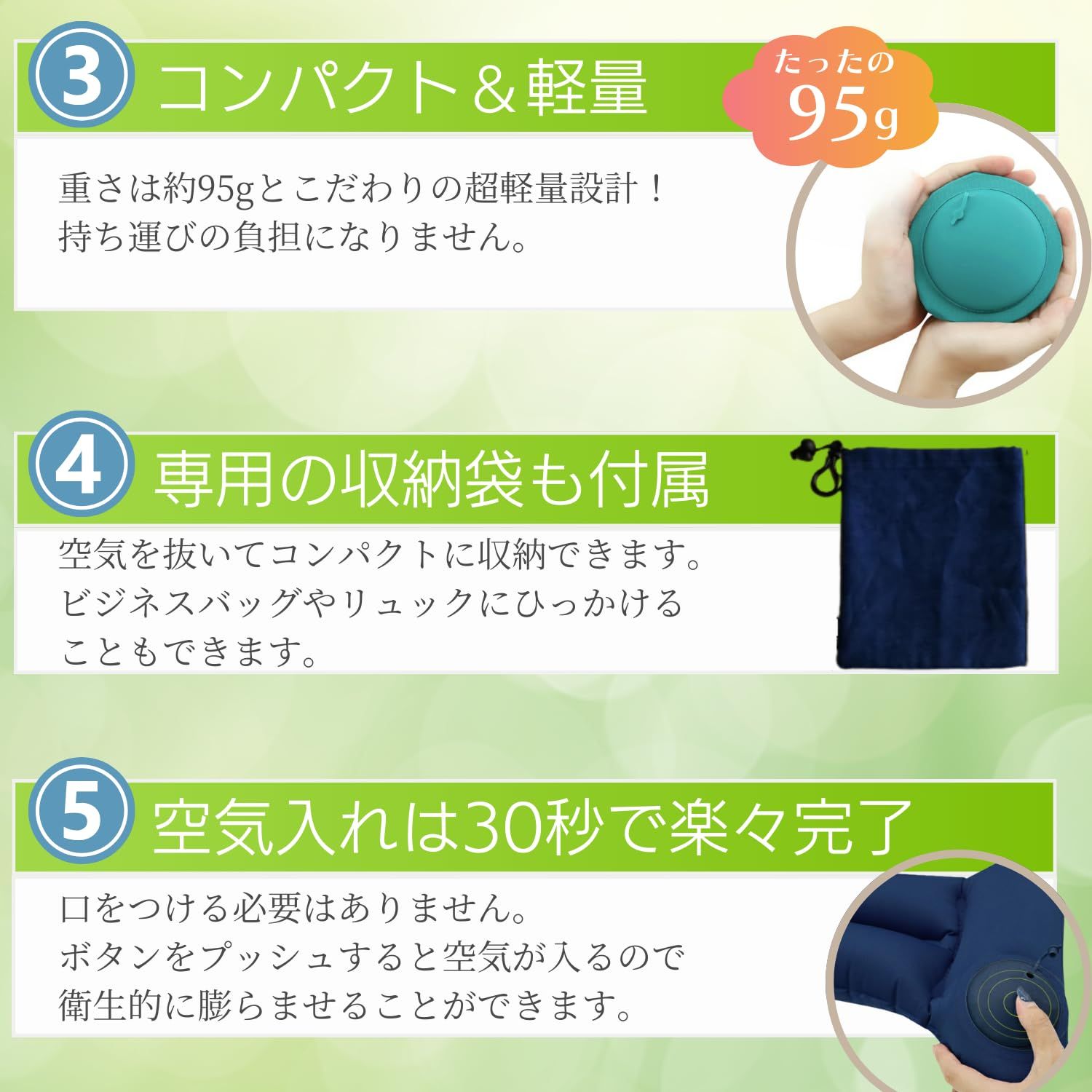 コンパクトなポーチ付きで持ち運びに便利空気入れは30秒でラクラク完了人工工学に基づいた腰痛を和らげる独自のカーブデザイン