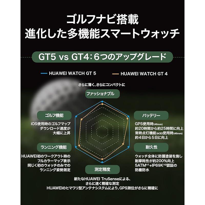 商品名:HUAWEI WATCH GT 5 46mm スマートウォッチ ゴルフナビ機能搭載 高精度GPS内蔵 高度なランニング体験 24時間健康管理 睡眠時呼吸乱れ検知 スポーツ用スマートウォッチ 最長14日間持続バッテリー iOS/Android対応 ブルー